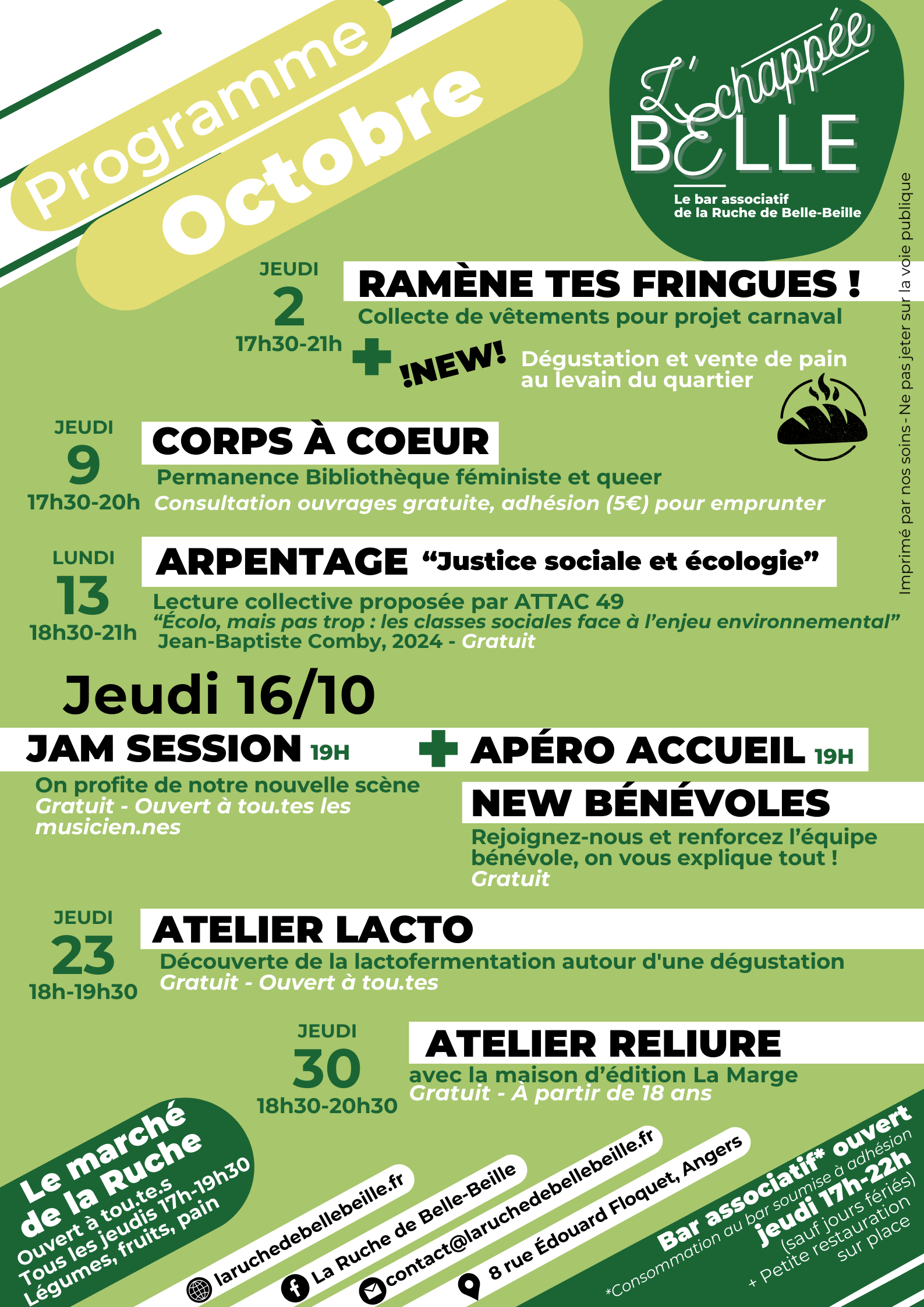 Avec un programme mensuel d’animations culturelles, militantes, d’ateliers, concerts, conférences, jeux, …